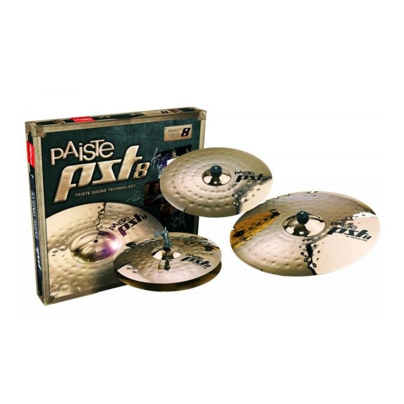 Paiste Set Rock, PST8 serie, conjunto que contiene 14 "Rock Hi-Hat - 16" Rock Crash - 20 "Ride Rock PST8 están hechos de bronce del legendario 2002 (B8), refinado a través de golpes de mano tradicional y perfeccionado con el único Reflector acabado hecho a mano